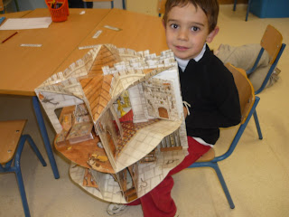A parte de la canción también conocimos algunos de sus poemas y los ilustramos para realizar un mural que formaría parte del gran mural del ciclo de infantil dedicado a este poeta: los niños/as de cinco años se han centrado en la biografía del mismo, los de tres han coloreado cuadros alusivos a momentos importantes de este autor y nosotros nos hemos dedicado a su obra poética.